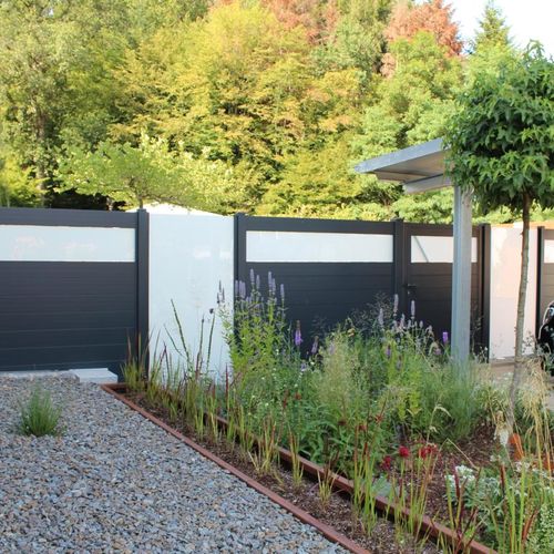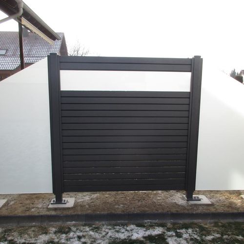 Unser Aluminium-Sichtschutz wird individuell nach Ihren Vorgaben gefertigt – millimetergenau, ganz nach Ihrem Bedarf. Wählen Sie aus einer Vielzahl von RAL-Farben Ihre Wunschfarbe – pulverbeschichtet für eine edle Optik und dauerhaften Schutz.